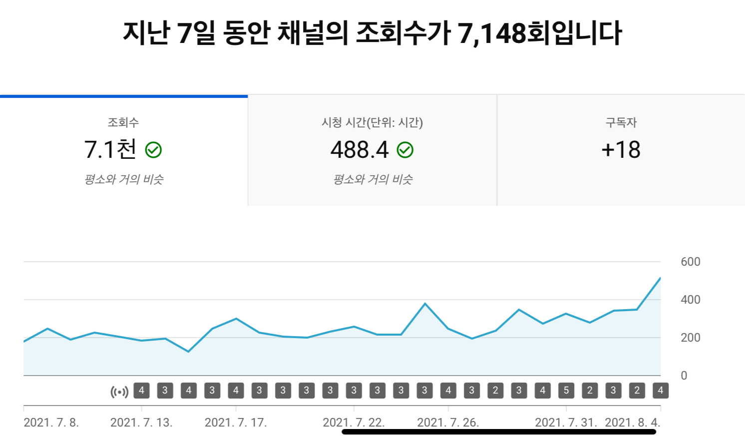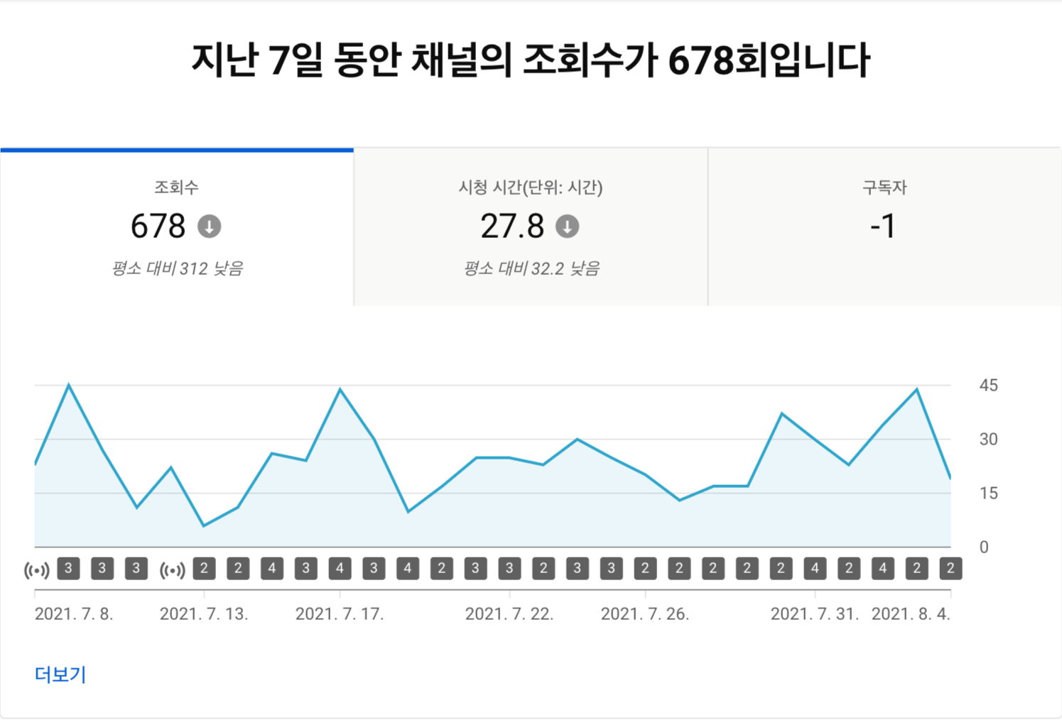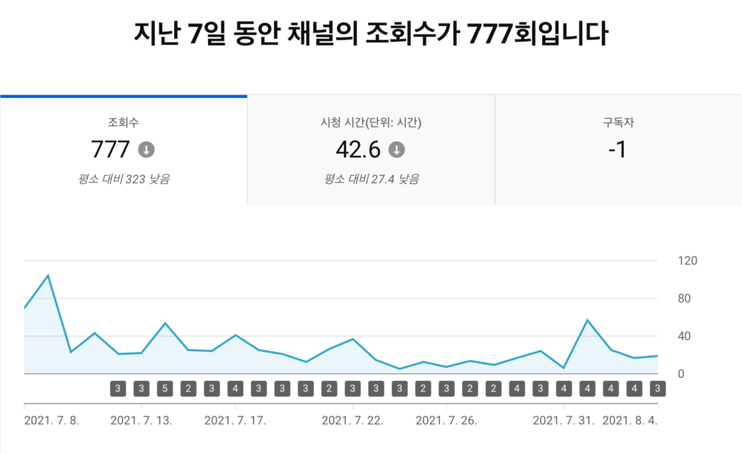최근 1주일 동안은 해당 채널의 시청자수보다도 더 떨어지는 결과가 나왔습니다.